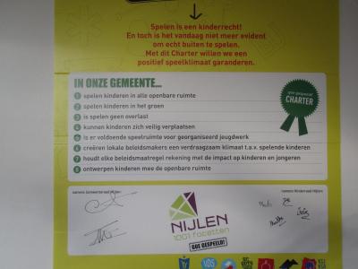 Sinds maart 2015 is Nijlen een Goe Gespeeld -gemeente. Toen werd het charter goedgekeurd door de voltallige Nijlense gemeenteraad. Op de Buitenspeeldag in 2015 werd het eveneens plechtig ondertekend door de burgemeester, de schepen van Jeugd en enkele meisjes en jongens van de Nijlense kinderraad. Met Goe Gespeeld wil de gemeente beklemtonen dat spelen een kinderrecht is en dat de gemeente hiertoe een aantal initiatieven neemt om zo een positief speelklimaat in Bevel, Kessel en Nijlen te garanderen.