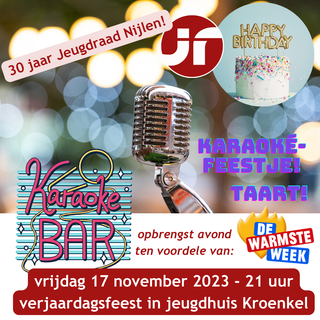 In 2023 bestaat de Nijlense jeugdraad precies dertig jaar. De adviesraad voor jeugd werd in 1993 opgericht en officieel erkend door de gemeente Nijlen. Reden om te feesten en dus organiseert de jeugdraad op vrijdag 17 november 2023 een heus verjaardagsfeest in jeugdhuis Kroenkel met een karaoké-bar. De opbrengst van de avond gaat trouwens naar het goede doel want de Warmste Week zal gesteund worden die dit jaar in het teken staat van 'Opgroeien zonder zorgen'.