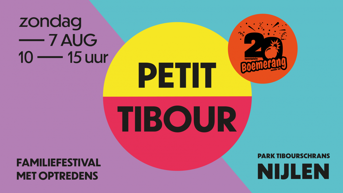 Het Nijlense festival Jour Tibour maakte begin juni de nieuwe editie en line-up voor 2022 bekend (check www.jourtibour.be). En er is nog meer goed nieuws te melden want overdag zal voortaan Petit Tibour doorgaan, een nieuw familiefestival voor kinderen en hun ouders en grootouders. De animatorenploeg van Speelplein Boemerang zet, samen met de werkgroep van Jour Tibour, mee zijn schouders onder het nieuwe initiatief en koppelt er voor deze eerste editie ineens ook het verjaardagsfeest aan, voor hun 20ste werkingsjaar.