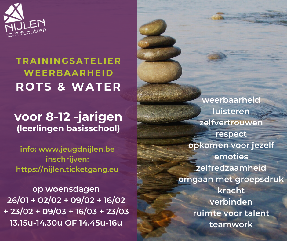 Het lokaal bestuur Nijlen en de Nijlense jeugdraad zetten de komende maanden verder in op het psychisch welzijn van kinderen en jongeren. In het najaar werd een eerste trainingsatelier rond weerbaarheid van kinderen van 8 tot 12 jaar, of een atelier "Rots & Water", georganiseerd. Dit kende veel succes waardoor er in het voorjaar nog twee reeksen voorzien zullen worden.