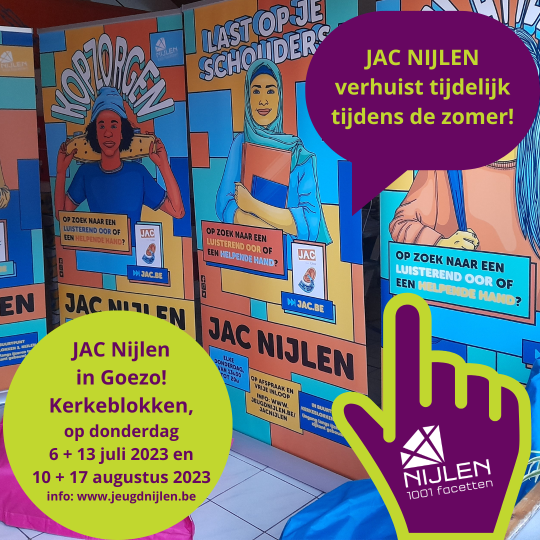 - JAC Nijlen is gesloten, met vakantie, op 20/07 + 27/07 + 03/08/2023