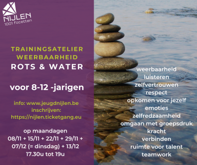 Het lokaal bestuur Nijlen en de Nijlense jeugdraad zetten de komende maanden extra in op het psychisch welzijn van kinderen en jongeren. Daartoe zullen verschillende acties en initiatieven genomen worden. Eentje dat binnenkort al gerealiseerd wordt, is een trainingsatelier rond weerbaarheid van kinderen van 8 tot 12 jaar, of een atelier "Rots & Water". Rots en Water is een ’psycho-fysiek’ weerbaarheidsprogramma waarin kinderen leren om op een goede manier voor zichzelf op te komen. Startend vanuit een fysieke - sportieve - invalshoek worden mentale en sociale vaardigheden aangereikt en...